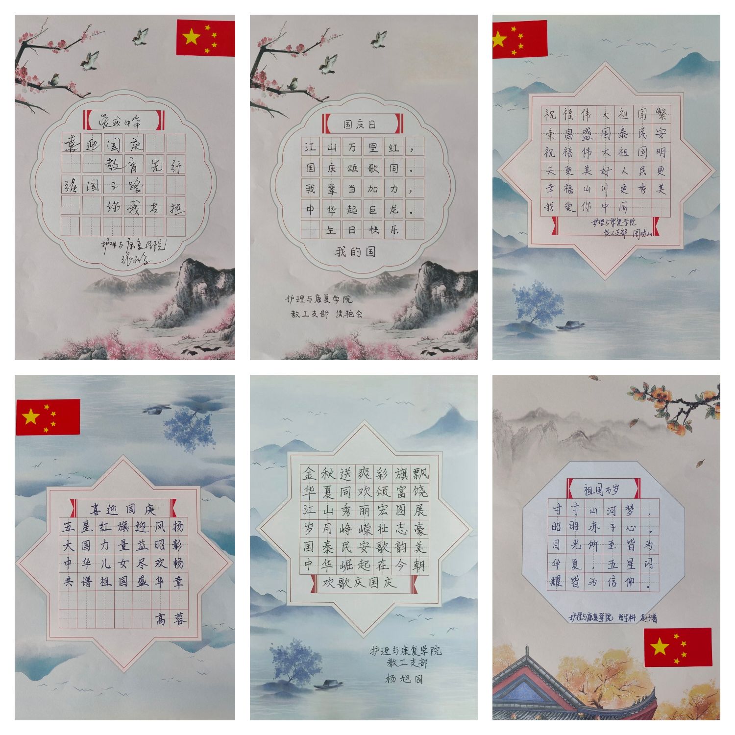 笔墨生香,书写精彩,心中有国,笔下有爱,护理康复学院的教师们用优美的文字、真挚的语言、悠扬的歌声表达对党、对国家、对教育、对人民的热爱之情,让我们共同庆祝新中国75周年华诞,愿以吾辈之力量,捍卫盛世之中华!(1946伟德国际源自英国文/图南逸平)