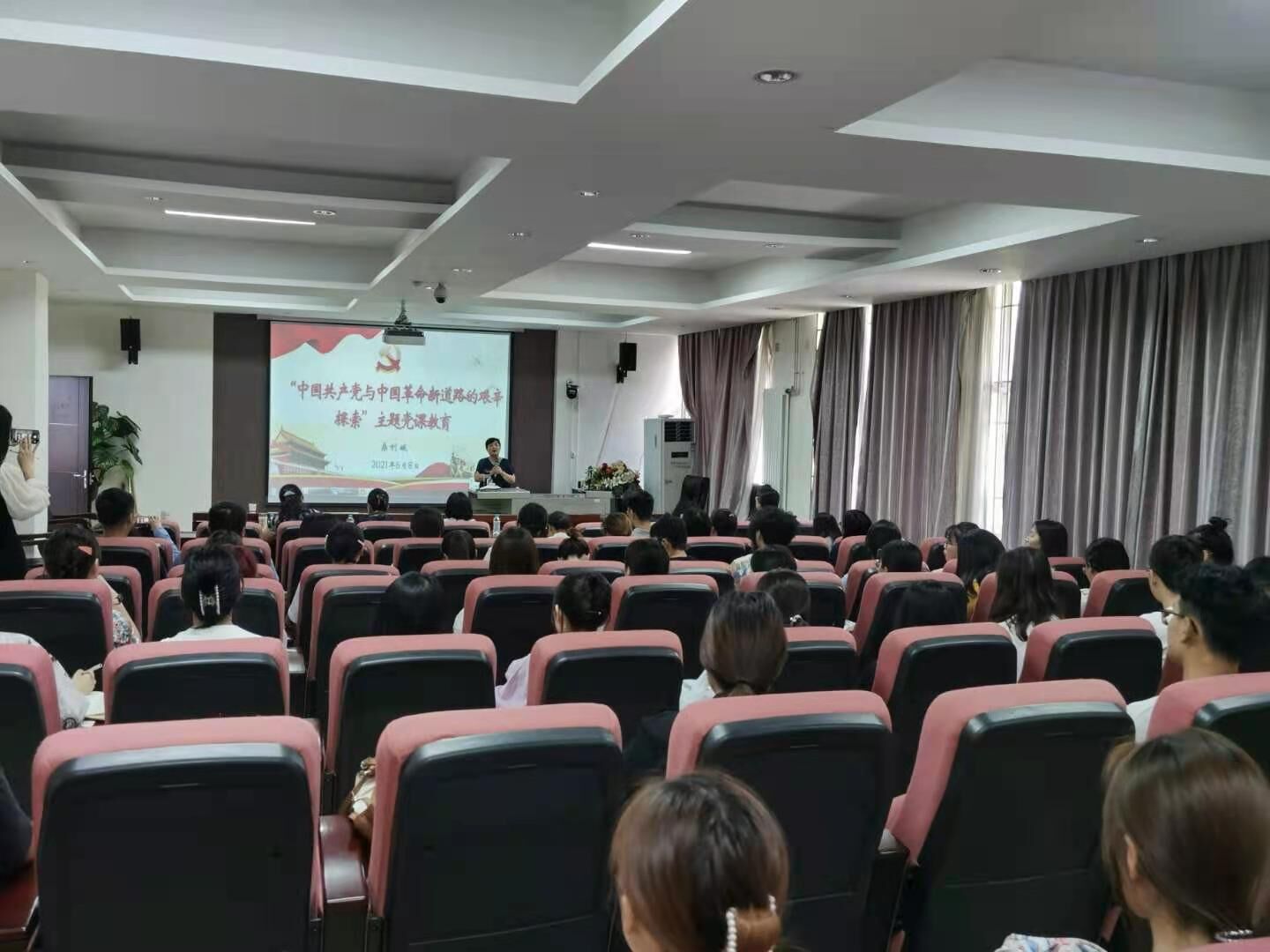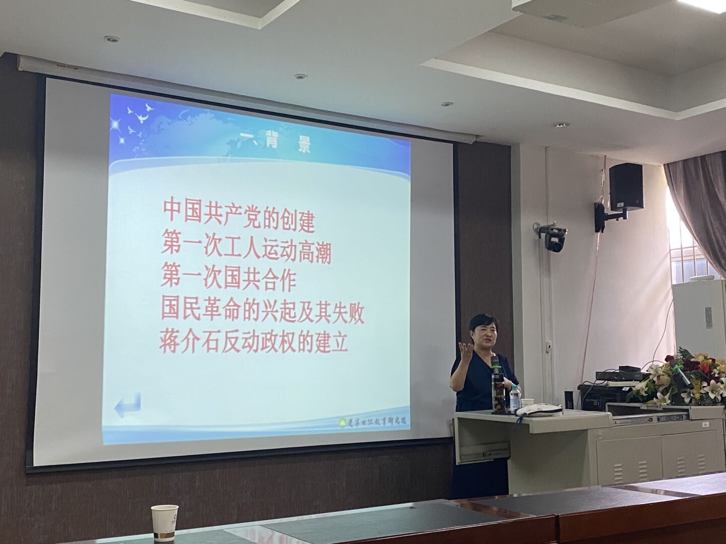 桑利娥院长以深刻领会习近平总书记在党史学习教育动员大会上的讲话精神、开展党史学习教育的重要性为切入点,从中国革命新道路探索的背景、中国革命新道路的艰辛探索及对当代的启示等三个方面,回顾了中国共产党从无到有、从弱到强的艰辛奋斗史,通过大量史实,从党的创立、北伐革命与国共合作、土地革命时期、抗日战争、解放战争以及创建新中国等各个重要时期一个个生动鲜活的事例中,再现中国共产党从建党、发展、自我革新到执政全国的波澜壮阔,一代又一代共产党人以坚定的共产主义信仰,托起民族复兴的重任,带领中国人民由黑暗走向光明,迈向全面建设富强民主文明和谐美丽的社会主义现代化强国新征程。桑院长深入浅出、生动形象的讲解,引起了在场师生的强烈共鸣,师生们纷纷表示,要从党史中深刻领会学习、准确把握中国共产党党史内容的精神实质,坚定理想信念,勇担历史重任。
