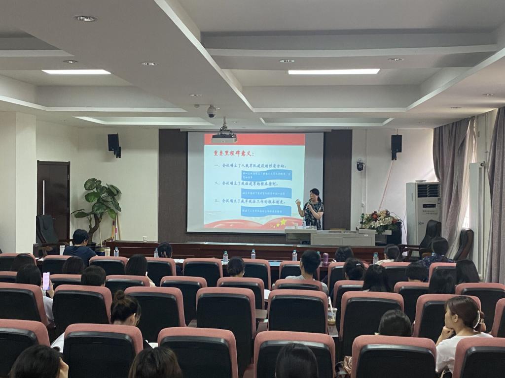 刘庆围绕“古田会议及其提出从严治党思想的历史背景”、“古田会议对早期从严治党若干重大关系的探索”、“古田会议从严治党思想的主要内容”、“古田会议从严治党思想的深远影响”等四个方面展开了生动的讲解,详细阐述了古田会议对中国共产党从严治党的理论贡献和时代价值,大家通过仔细聆听认真观看每一张珍贵历史图片,深切感受到革命先辈为了国家民族利益不畏艰难,勇于牺牲的高贵品格,体会到“青山处处埋忠骨、红军精神代代传”的深刻含义,对习近平总书记提出的“古田是我们党确立思想建党、政治建军原则的地方,是我军政治工作奠基的地方,是新型人民军队定型的地方”这一重要论述有了更加深刻的感悟。同时,她鼓励大家以学党史为重要契机,重温红色记忆,传承革命精神,对下一步如何推动学院基层党建全面进步,推进党建质量全面创优提出了具体工作要求。