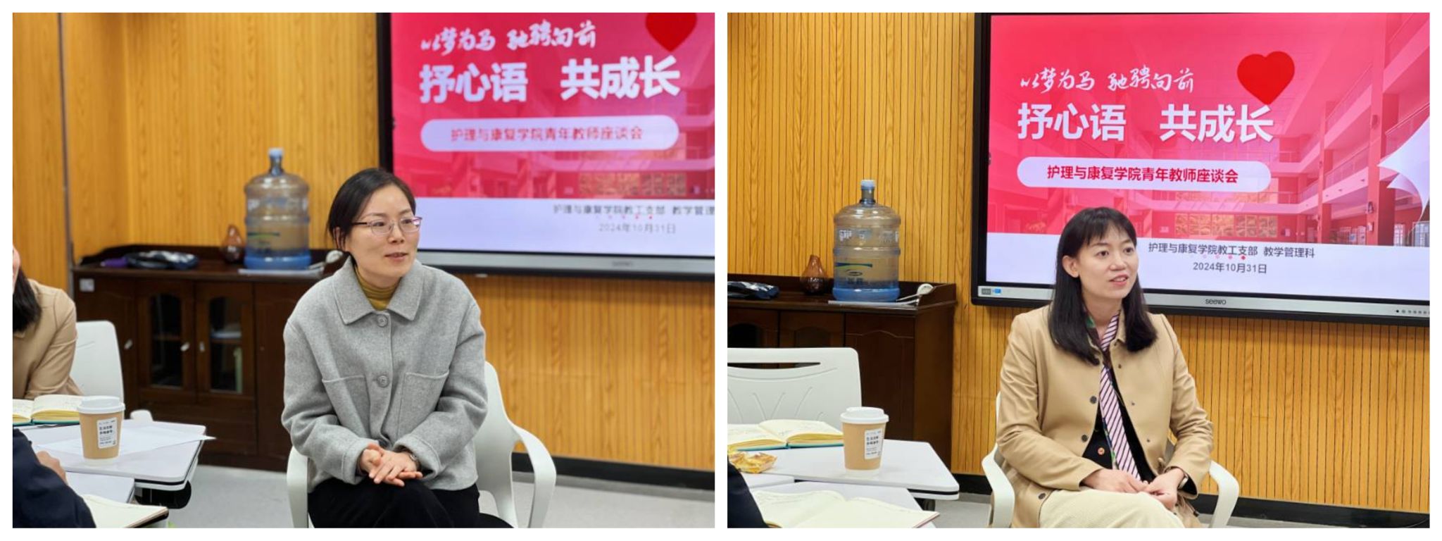 座谈会上,牛育鸿对各位青年教师的工作能力与工作热情给予充分肯定。他在讲话中谈到,青年教师是未来的希望,青年教师的培养工作是“重中之重”,表达了对年轻教师成长的殷切希望。优秀青年教师代表王丽娟和张海苗两位老师先后围绕自身入职以来的成长经历和深刻体会,做了交流发言。她们丰富的成长履历和“敢打敢拼”的奋斗精神,勇于担当的优秀品质让现场的青年教师无不动容。