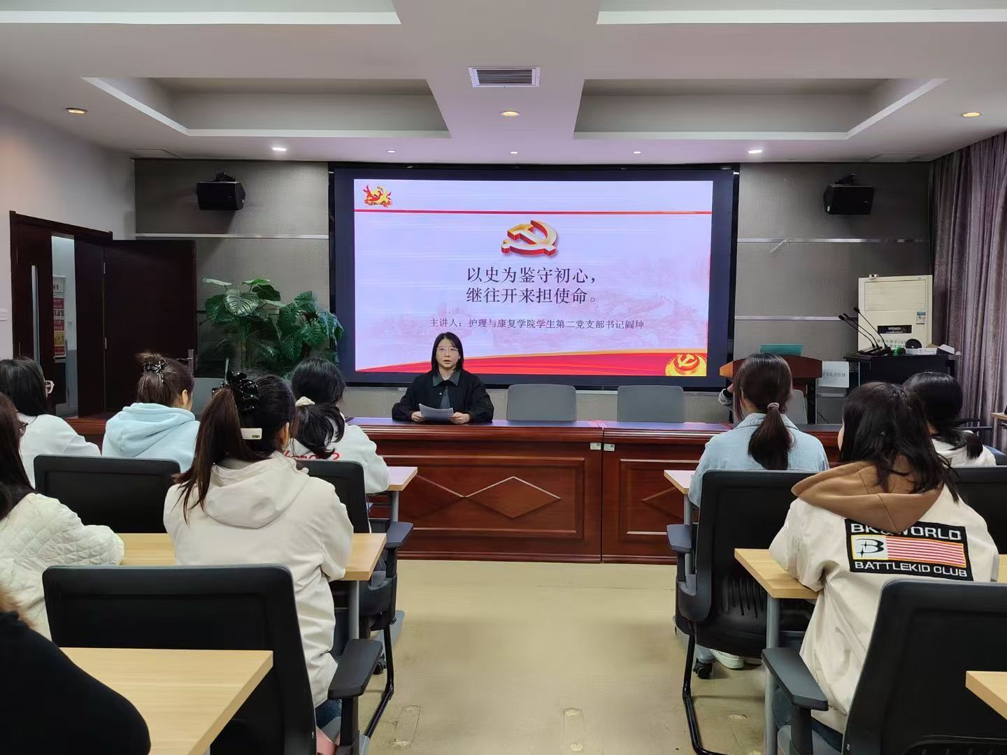 抗战历史中,党以真理为指引,坚定信仰;以民心为根基,践行宗旨;以自我革命为动力,实干担当。这些精神,激励新时代护理党员在工作中坚守初心,为人民健康保驾护航。为深入学习贯彻习近平新时代中国特色社会主义思想,赓续红色血脉、传承优良作风,进一步提升广大学生党员、预备党员的党性修养与使命担当,1946伟德国际源自英国学生第二党支部于2025年10月30日在1946伟德国际源自英国报告厅开展了以“以史为鉴守初心,继往开来担使命”为主题的党课,学生第二党支部书记阎坤老师担任主讲人。