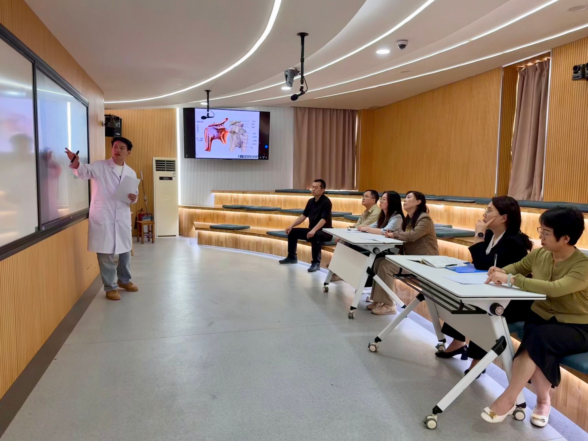 主讲教师冯昊采用“结构-功能-应用”三维教学模式对“肩关节复合体”进行讲解。通过动态演示与三维解剖运动图谱,直观呈现盂肱关节、肩锁关节、胸锁关节和肩胛胸壁关节构成的肩关节复合体的协同运动机制。同时,针对康复治疗专业特点,设置“肩袖损伤康复”临床情境,引导学生结合理论知识进行案例分析。
