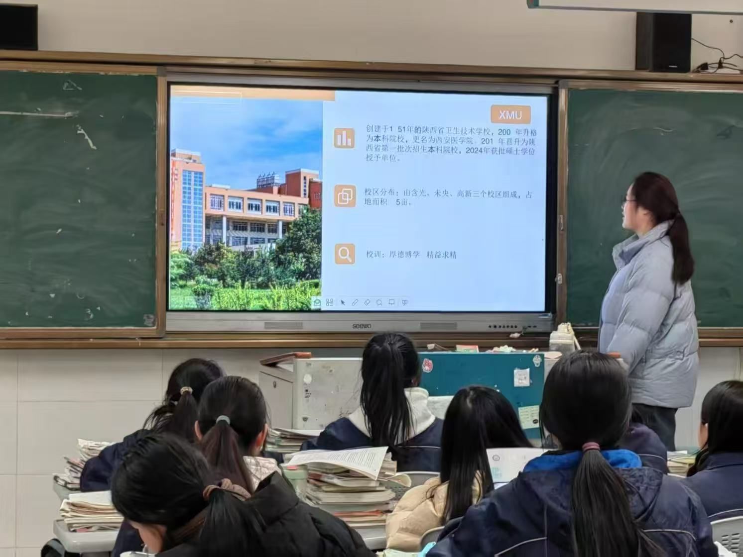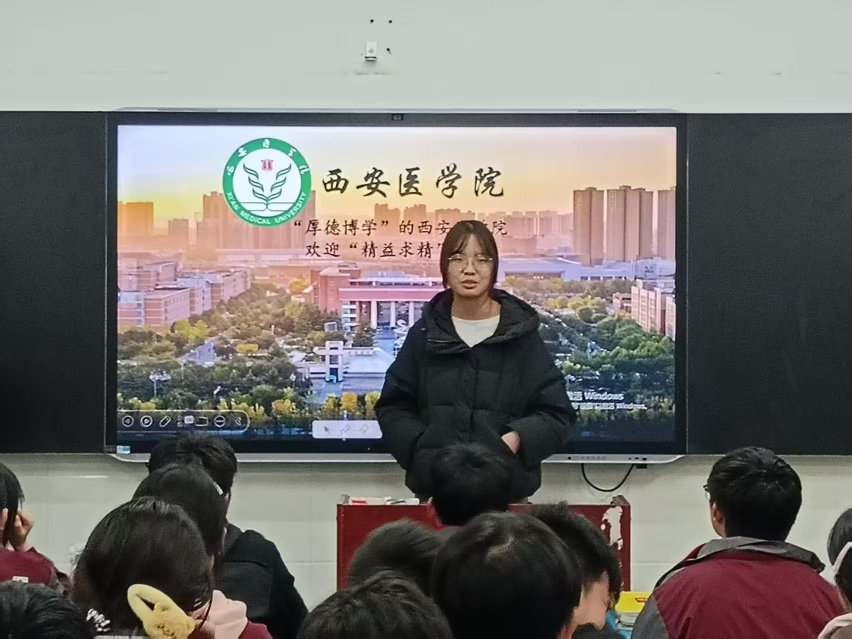 在西安市田家炳中学,护理2322班韩林玥寒假重返母校,以"返家乡"实践者的身份开展系列活动。她通过制作PPT与视频,分享了大学期间护理专业的学习感悟与成长历程。她坦言:“希望这份医学梦想的接力棒在一届又一届学子手中稳稳传递,照亮更多学子前行的方向。”