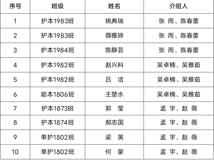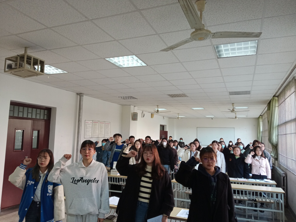 大会中各发展对象汇报自己对党的认识,入党动机,本人履历,近期的思想动态,现实表现以及应向党组织说明的其他问题。之后入党介绍人简述该生主要情况,表明对其发展入党的意见。经过答辩环节过后,所有党员一致同意接收姚典瑞、陈静芸等10名积极分子成为预备党员。