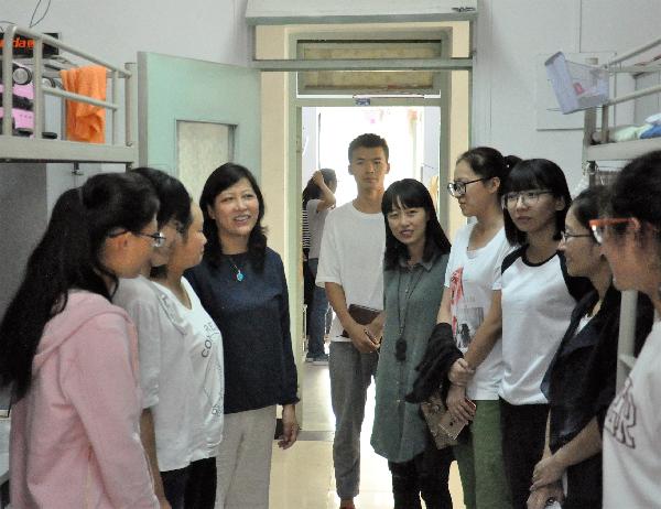 上午12:30,景书记一行人来到五号楼新生宿舍。为了帮助少数民族的同学尽快适应新环境,景书记询问同学们在学习生活中所遇到的难题,并耐心地给予解答,同时还鼓励她们多参加课外活动,丰富课余生活。此外,学院学生管理科昝老师还指出个别宿舍存在的安全隐患,同时叮嘱同学们注意财产安全,用电安全,保持良好的宿舍环境等,在此次活动中,总计走访了70多个新生宿舍,同学们在学院领导、老师的关注、关爱下倍感亲切!同时,新生们也提出了自己的意见和建议,气氛十分融洽。