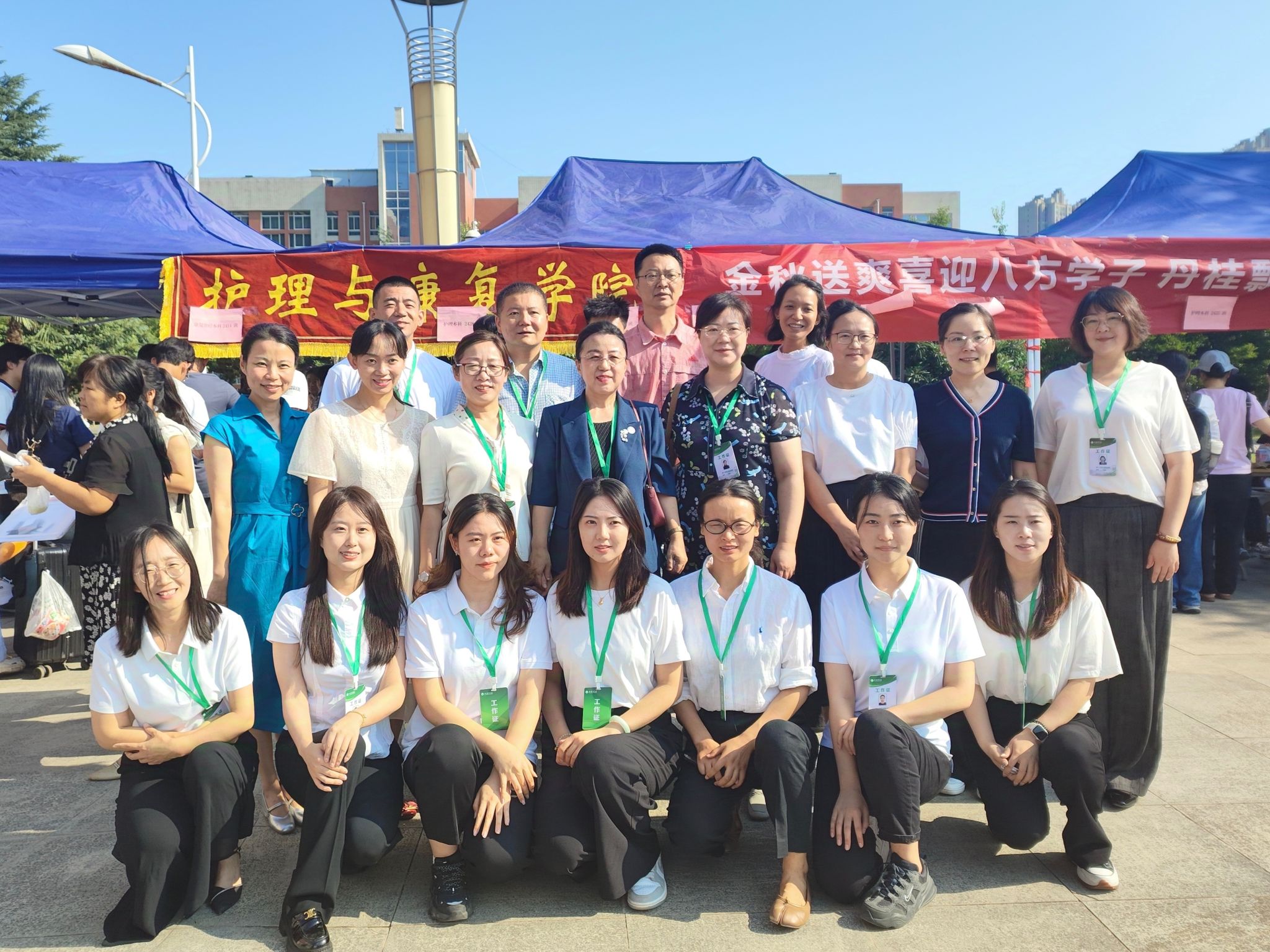 学院领导与迎新工作人员合影