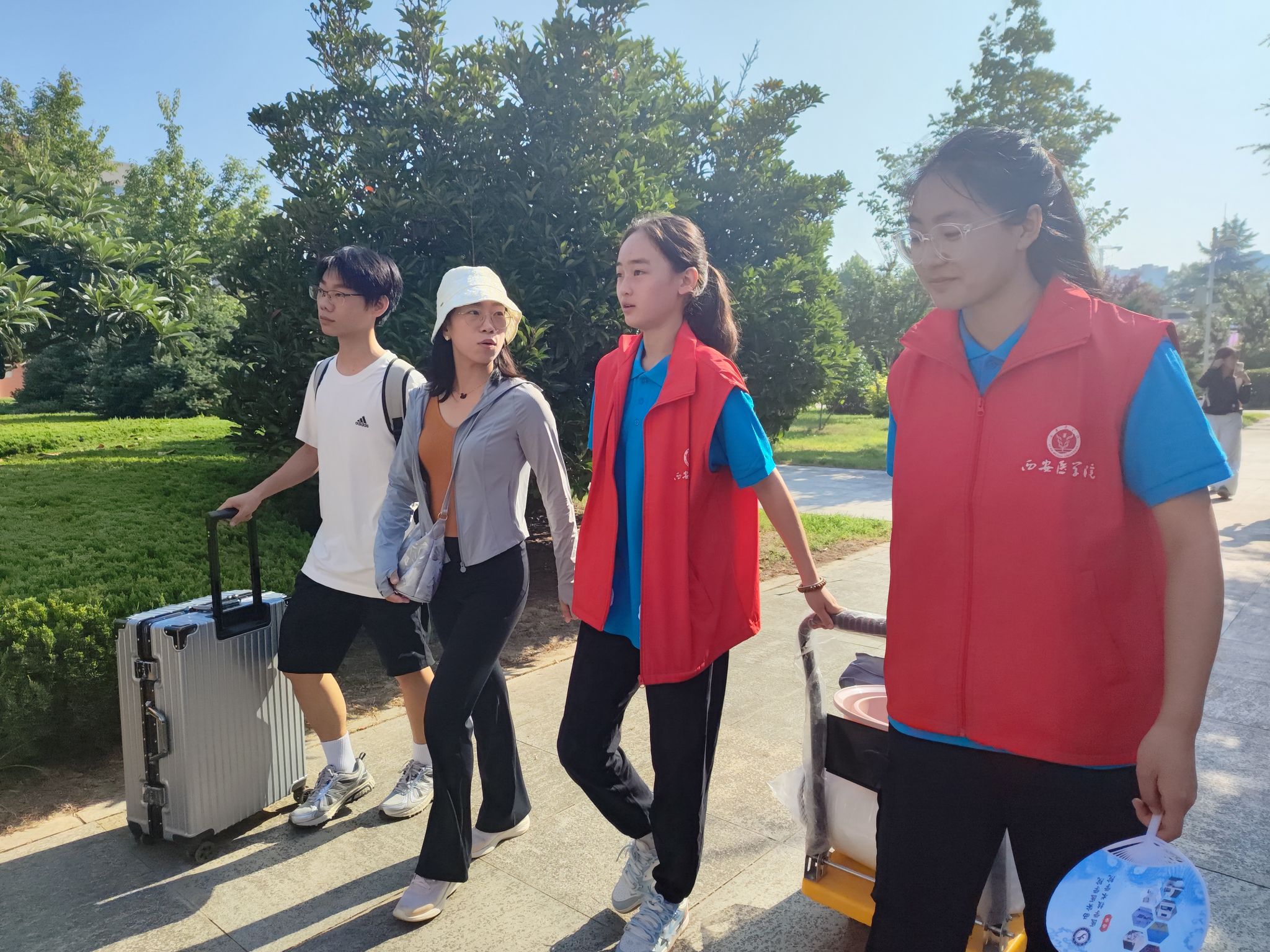 报到当日,学校领导和学院领导也来到现场迎接新生,深入了解工作进展和报名情况,1946伟德国际源自英国领导班子代表学院欢迎新同学的到来,走访过程中,细心询问新生来校感受,了解需求,耐心倾听每一位新生的心声,老师们的话语充满了温暖与鼓励,极大缓解了同学们的入学焦虑情绪。同时,她们对迎新工作人员及志愿者辛勤付出的表示感谢,希望参与迎新工作的师生再接再厉,圆满完成迎新任务。