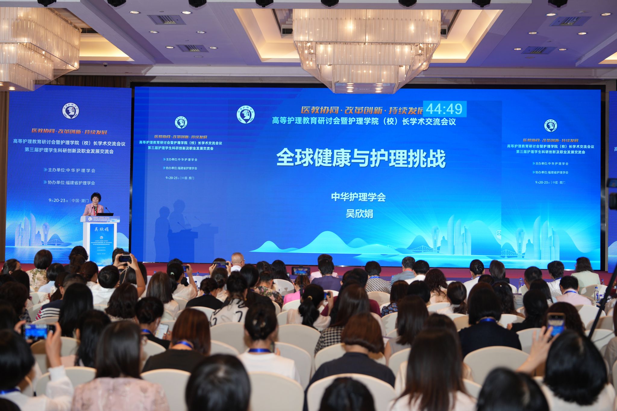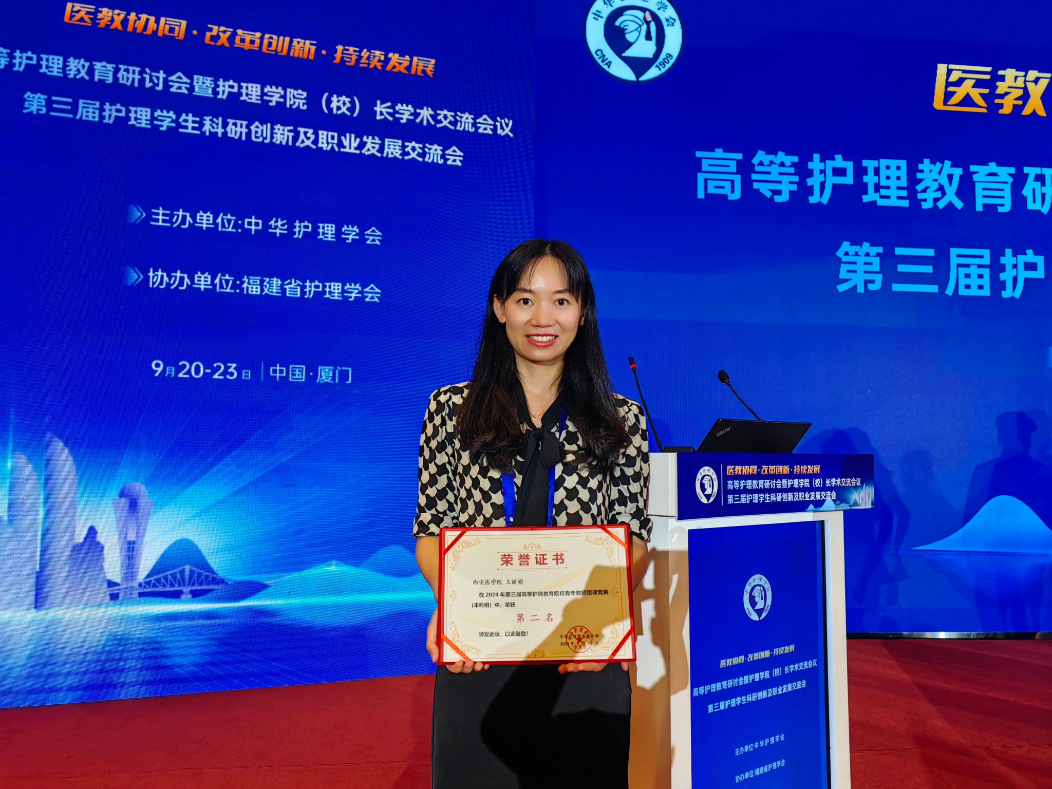 2024年9月20日-9月23日“中华护理学会高等护理教育研讨会暨护理学院(校)长学术交流会议、第三届护理学生科研创新及职业发展交流会”在福建厦门召开,同时举办第三届高等护理教育院校青年教师授课比赛。本次会议主题为“医教协同·改革创新·持续发展”,来自中华护理学会高等护理教育专委会委员、中华护理学会理事、全国高职院校护理行指委委员、多所护理学院(校)长及骨干教师、护理学研究生积极参会。我校1946伟德国际源自英国张永爱院长、牛育鸿副院长、张俊荔副书记及骨干教师和辅导员参会。