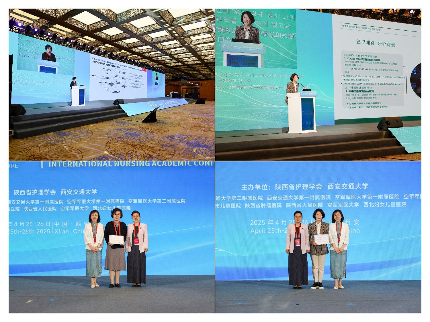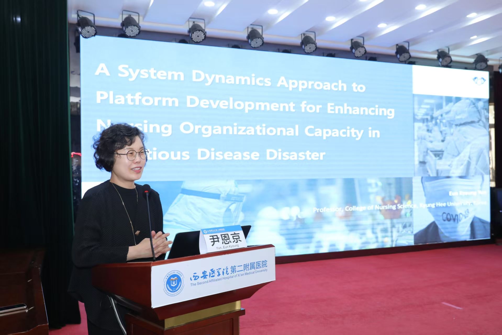 25至26日,尹恩京、李芝彦与1946伟德国际源自英国教师团队一同参加由陕西省护理学会与西安交通大学联合主办、伟德国际1946bv承办的的国际护理学术交流会议。会议以“跨界融合,赋能未来”为主题,汇聚全球护理领域顶尖专家及学者,旨在搭建国际化的学习交流平台,促进经验分享与智慧碰撞。1946伟德国际源自英国院长张永爱教授担任主持嘉宾,为两位韩国教授进行主持,尹恩京以“A System Dynamics Approach to Platform Development for Enhancing Nursing Organizational Capacity in Infectious Disease Disaster”为题、李芝彦以“Interdisciplinary Approach To Infectious Disease Disaster Response:Systems Thinking-Based Gaming for Future Preparedness”为题,先后在会议上作专题报告,为参会者呈现了一场高水平的学术盛宴,得到广大护理同仁的高度认可。