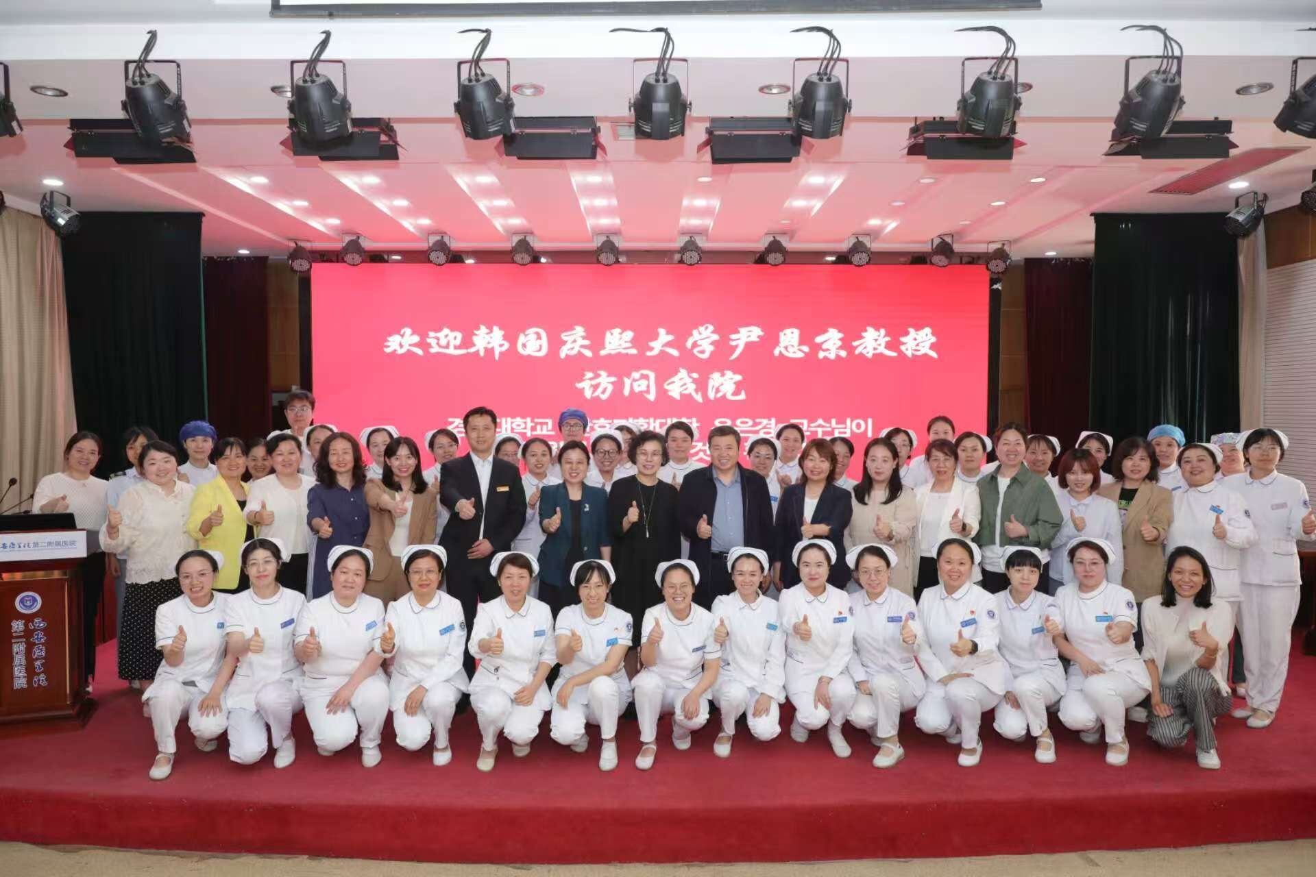 尹恩京在伟德国际1946bv第二附属医院专题讲座并合影留念