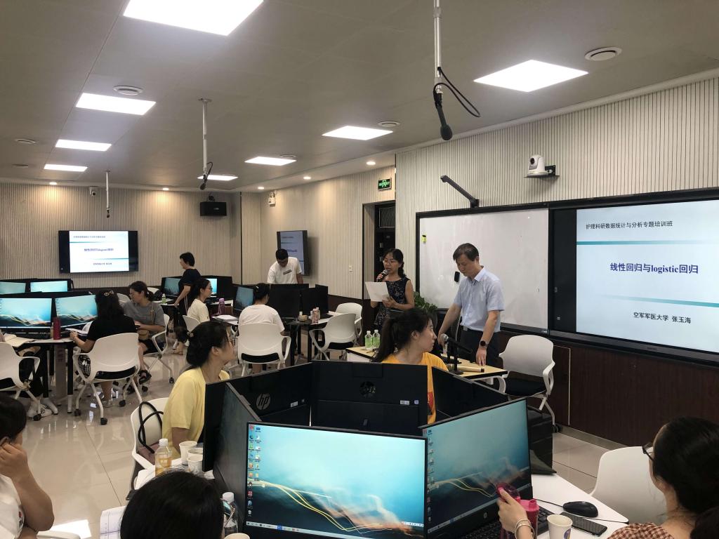 此次培训分别邀请西安交通大学医学部公共卫生学院党少农教授、空军军医大学张玉海教授、西安交通大学第二附属医院周晓荣主任护师、1946伟德国际源自英国张永爱教授、唐争艳、张璐等两位副教授,结合SPSS统计分析软件,以科研实例为基础讲解各类实用统计分析方法及其应用,为学员提供实践操作机会,并进行现场的指导与答疑。