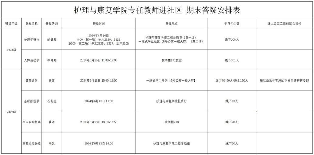 期末串讲答疑“微课堂”现场,老师耐心细致地为学生梳理了《健康评估》、《基础护理学》、《人体运动学》等课程知识点,为学生答疑解惑,理清思路,现场互动频繁,气氛热烈。学生们纷纷表示,这样的串讲答疑形式既实用又高效,不仅帮助他们解决了复习中的难题,也增强了他们备考的信心。