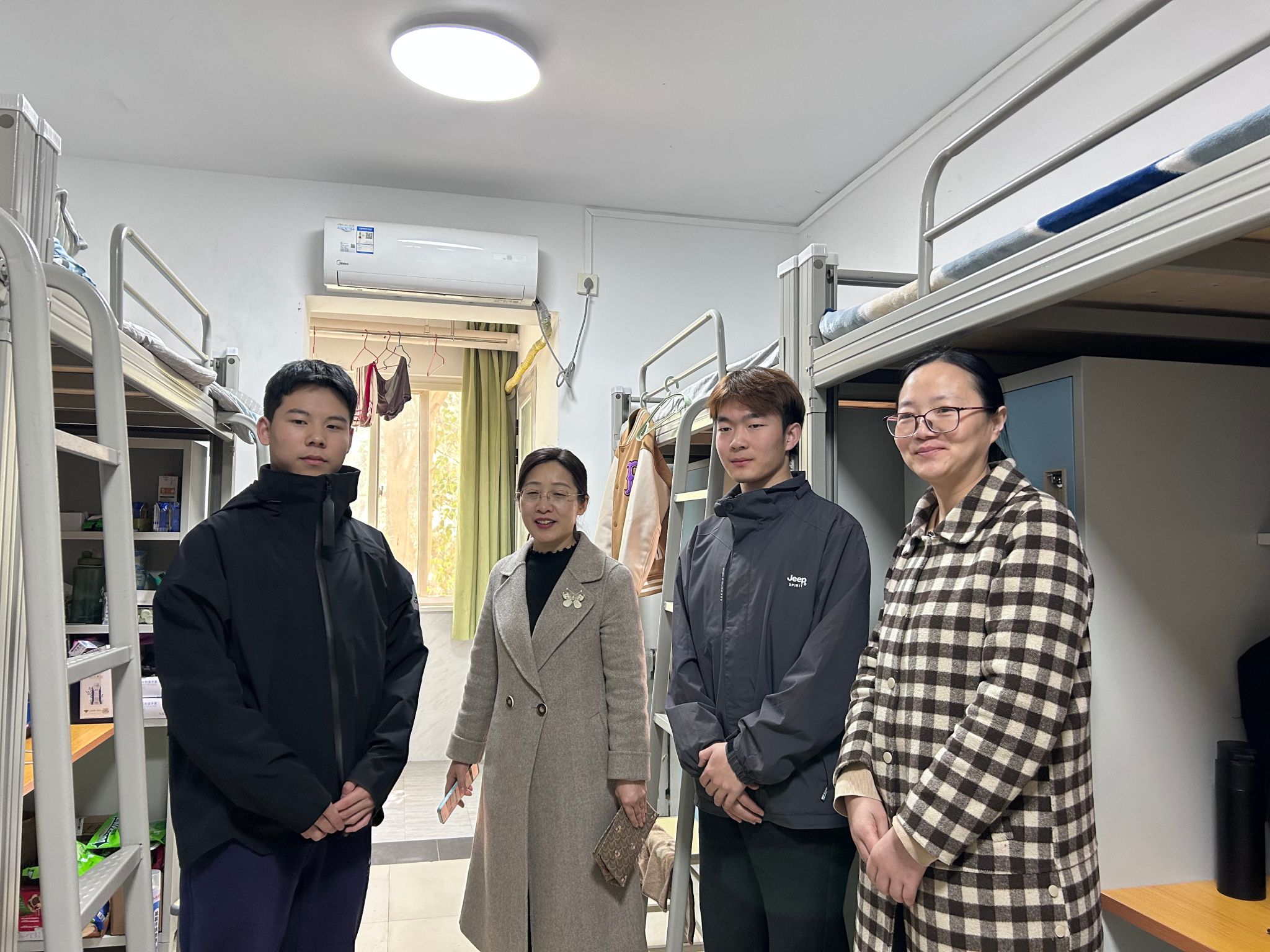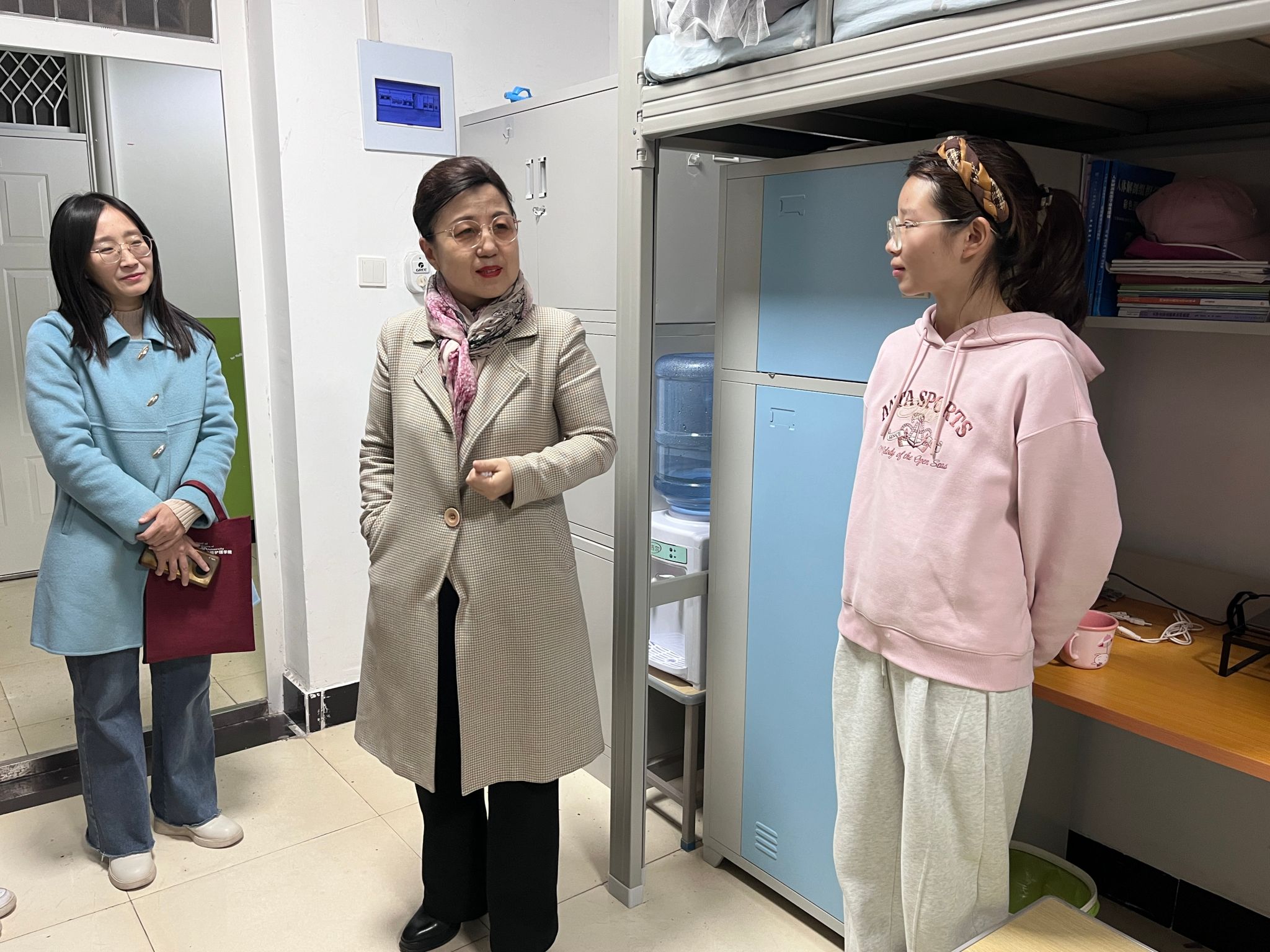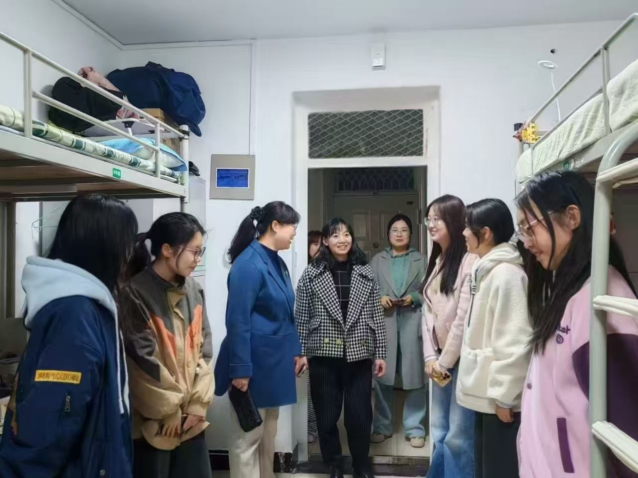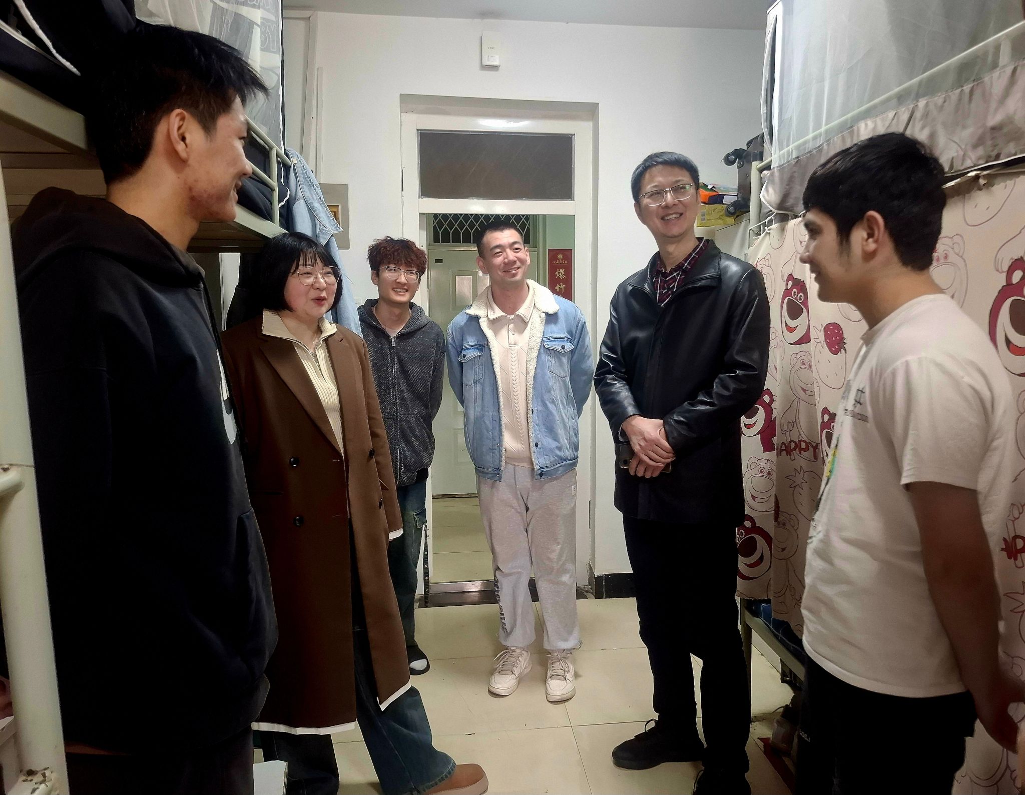 为落实“以学生为中心”的育人理念,深入了解学生思想动态与生活需求,切实解决实际问题,营造安全文明、和谐温馨的宿舍环境,3月18日中午,1946伟德国际源自英国党总支书记刘庆、院长张永爱、党总支副书记张俊荔、副院长牛育鸿带领学院科级干部、全体辅导员开展“情系学子,共筑温馨家园”主题宿舍走访活动,覆盖我院2022级至2024级本科学生宿舍,传递学院的关怀与温暖。
