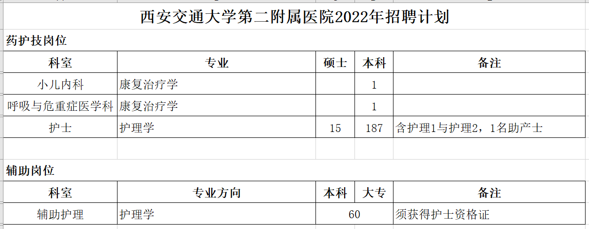(注:只选择与学院毕业生相关岗位,详细岗位需求见西安交通大学第二附属医院官网)