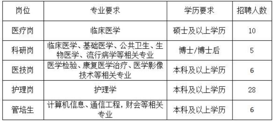 儿科、麻醉、病理、重症、急诊等专业紧缺人才,学历要求为本科及以上学历。