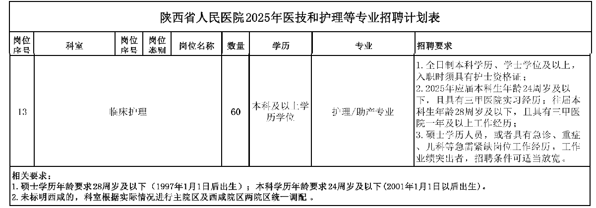 陕西省人民医院2025年招聘合同制医技和护理等岗位工作人员公告