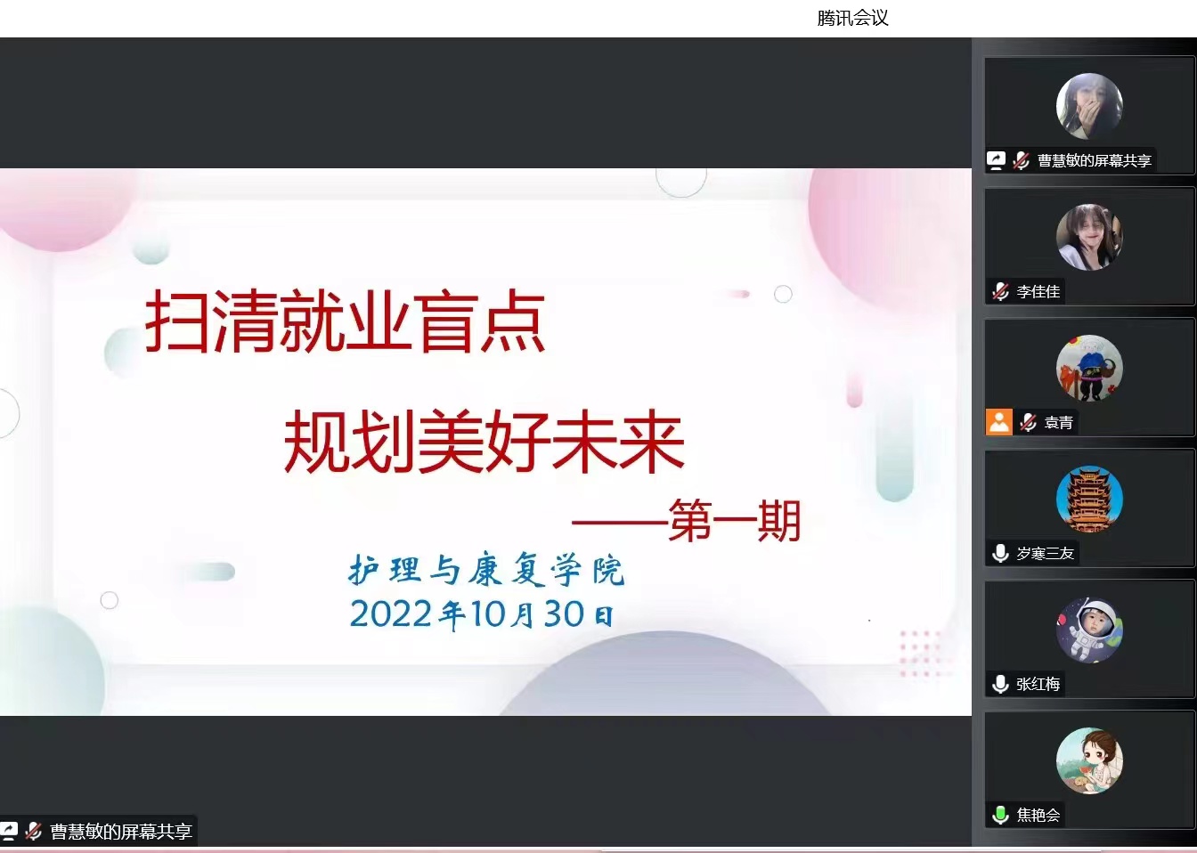 袁青向参会人员说明本次会议目的,希望同学们畅所欲言,提出自己在就业、择业过程中面临的困惑或遇到的问题;张红梅针对当前的就业形势进行客观分析,提出了就业方面的建议和对策,强调就业择业中的诚信问题至关重要,引导学生正确认识自我,鼓励学生找准定位,学会科学、合理规划自己的职业生涯;唐玄兵就公立医院与私立医院如何选择、事业编制等问题进行了答复,认为职业选择要因人而异,应结合自身实际情况考虑,做出最优选择;袁青一一解答了报到证、三方协议、档案、户口、改派等同学们所关心的问题,并分析了康复治疗学专业学生的就业现状,帮助同学们对就业方向有更加明确的认知和规划。