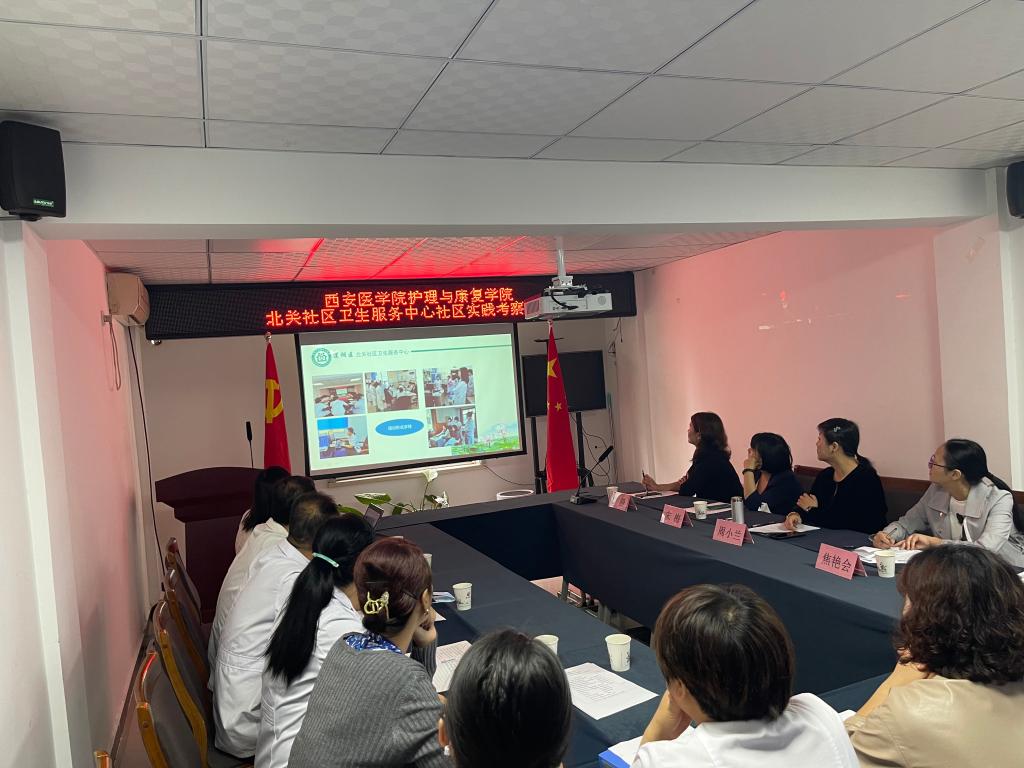 社区实践教学基地的管理人员详细介绍了基地概况、师资情况、教学条件、教学特色、教学内容及过程等。双方就实践教学基地建设、师资遴选及培养、社区护理见习及实习工作安排等展开了深入交流。