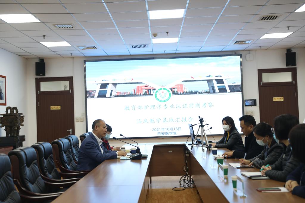 刘岭代表学校对专家组远道而来表示热烈欢迎和诚挚谢意,向与会人员介绍了参会校领导。随后,校长杨帆介绍了学校基本办学情况、医学教育的发展情况和护理学专业建设情况。他表示,学校作为陕西省唯一一所独立建制的西医类本科院校,围绕国家医药卫生事业发展需要,努力培养德智体美劳全面发展的医学人才,立足陕西,服务全国,力争为基层卫生与健康事业做出更大贡献。