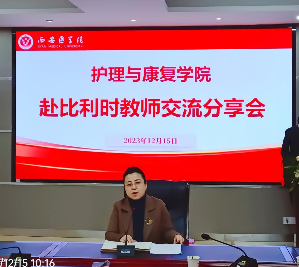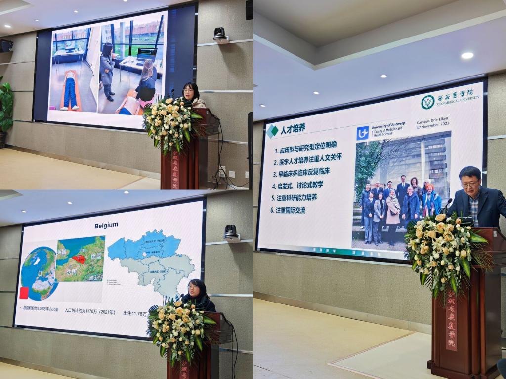 学院副院长牛育鸿、外科护理学教研室主任张璐及妇产科护理学教研室李腾老师分别就比利时汤姆斯莫尔大学和安特卫普大学的学习环境、专业设置、课程体系、文化氛围等内容做汇报发言,分享了访学期间的学习收获、文化交流和出访见闻等。此次出访,三位老师开展了理论课授课、专业工作坊、联合指导学生、临床实习调研、国际化培养研讨等多项教学科研活动,全面、具体地展示了学校教育教学水平及教师国际合作能力,同时也为双方医护人才培养,人文交流做出了积极贡献。