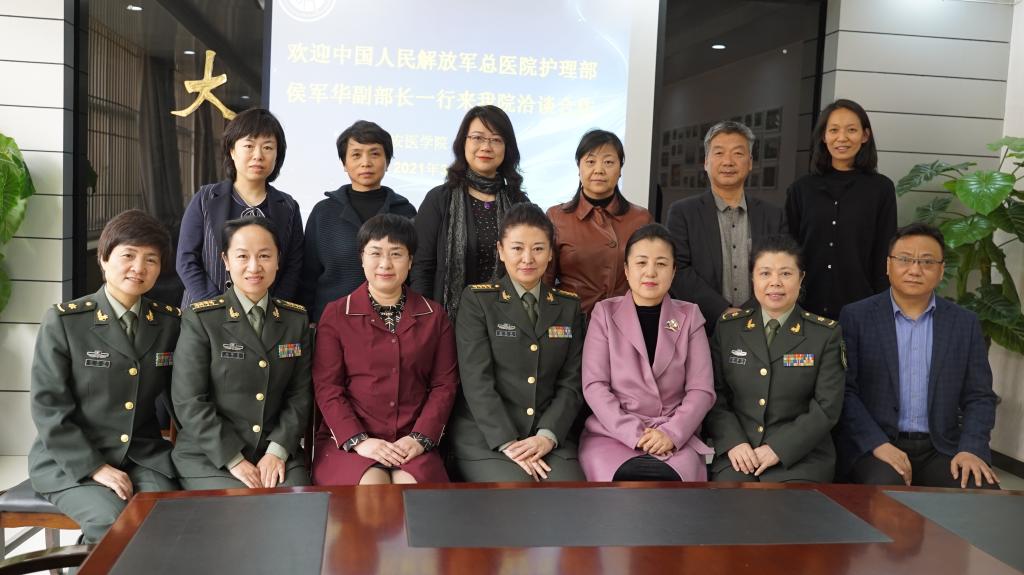 和新盈副校长代表学校党政向侯军华副部长一行表示热烈欢迎,对中国人民解放军总医院(301医院)支持我校人才培养表示衷心感谢。她首先向各位来宾介绍了学校办学历史、办学定位、学科专业优势及“十四五”发展愿景。随后强调301医院既是一所国内高水平现代化综合性医院,又是以研究生教育为主的解放军医学院。希望学校和医院以此次合作为契机,今后在师资培养、学生就业等方面展开更深层次合作,谱写新时代拥军爱民、军地合作新篇章,为建设“健康中国”贡献力量。